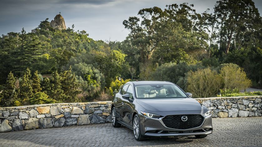 Os faróis surgem debaixo do capô. A frente tem os “ares” de família Mazda. O design é suave, sem perder dinâmica, com uma linha traseira a descer suavemente. Tem uma imagem discreta, mas presente.