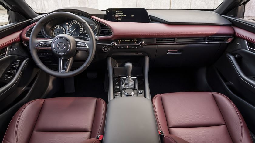 Sempre em crescendo, a Mazda apresenta no modelo a concurso o equipamento Excellence. O interior tem bancos em couro, de tom avermelhado, que se estende ao tablier e às portas. Neste modelo, como noutros da Mazda, há um pormenor de design interessante: A fluidez das linhas levou a uma espécie de prolongamento do tablier até às portas, conferindo uma continuidade no espaço, muito agradável ao olhar.