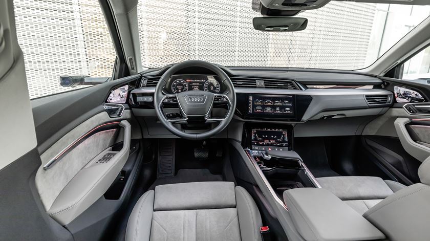 A bagageira tem 600 litros de capacidade, e há um outro espaço com 60 litros debaixo do capot, útil para guardar a multiplicidade de cabos necessários ao carregamento do Audi e-tron quattro.