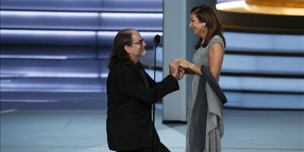 O realizador Glenn Weiss venceu o Emmy para melhor direção de um programa de entretenimento. No discurso de agradecimento, deixou a plateia em choque e em êxtase ao pedir a namorada em casamento.